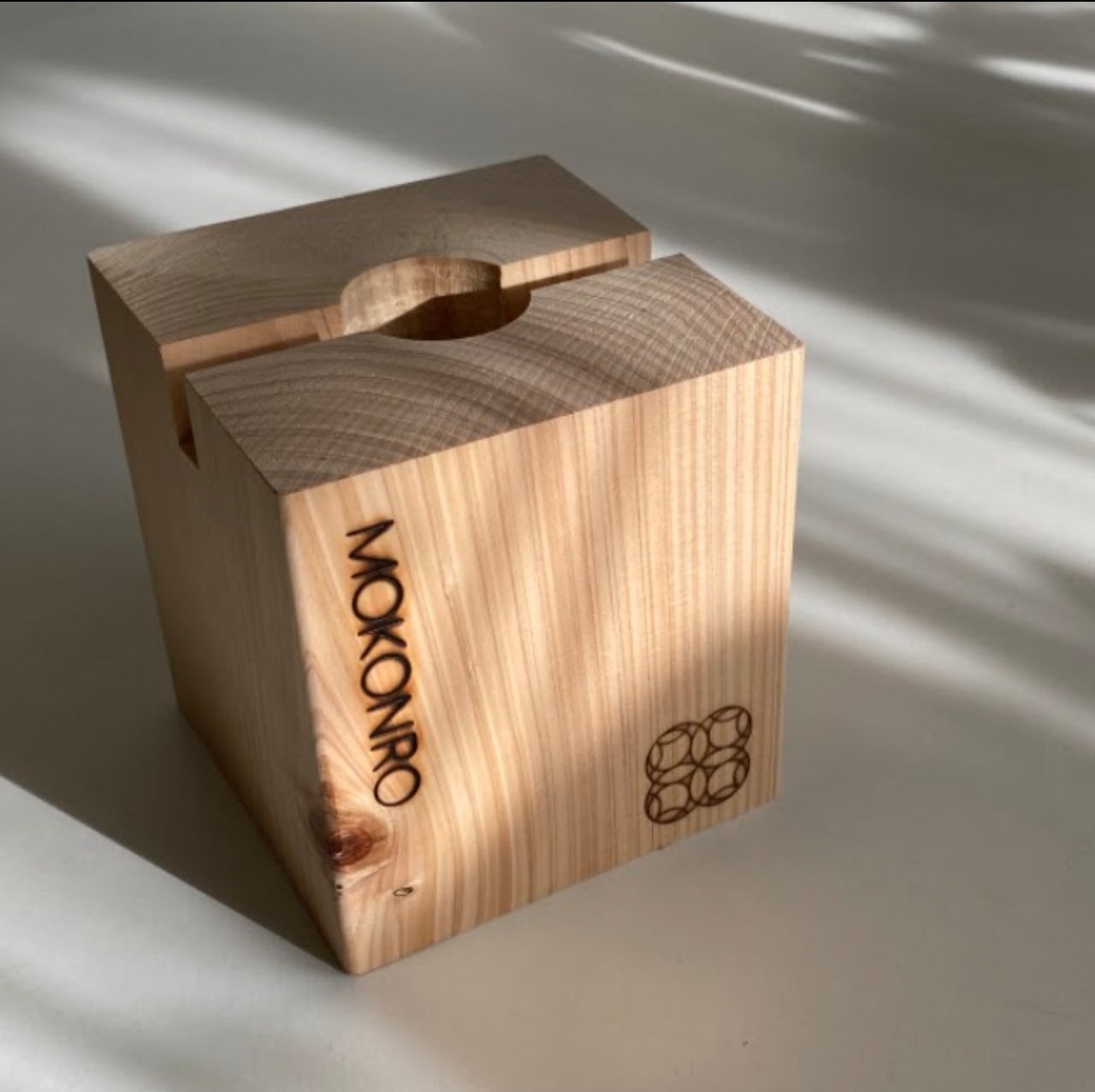 ●もこん炉は天然木の為、木目やフシ、われ目など一つ一つ異なり、湿度によって重さも変化します。天然木ならではの個性・風合いをお楽しみください。
